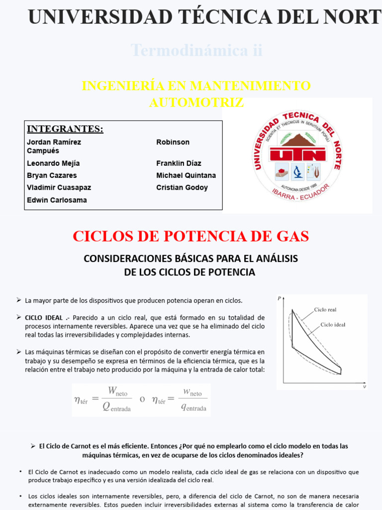 • En los ciclos de potencia de gas (motores a gasolina, los motores diésel y las turbinas de gas convencionales) el