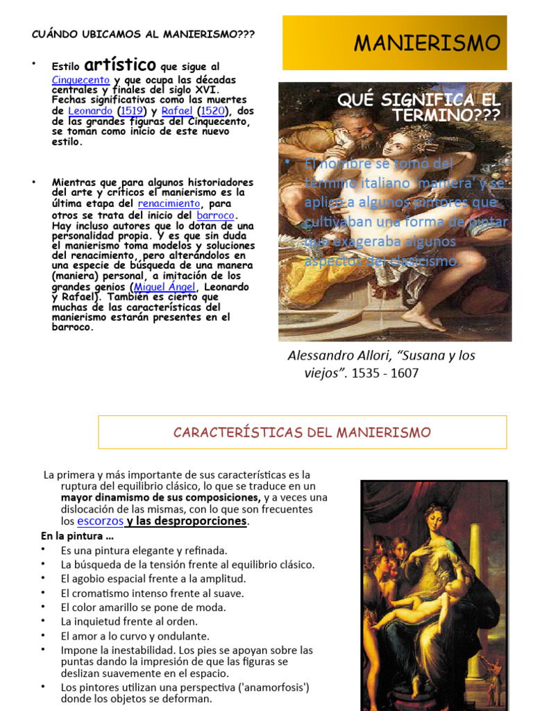 manierismo estarán presentes en el