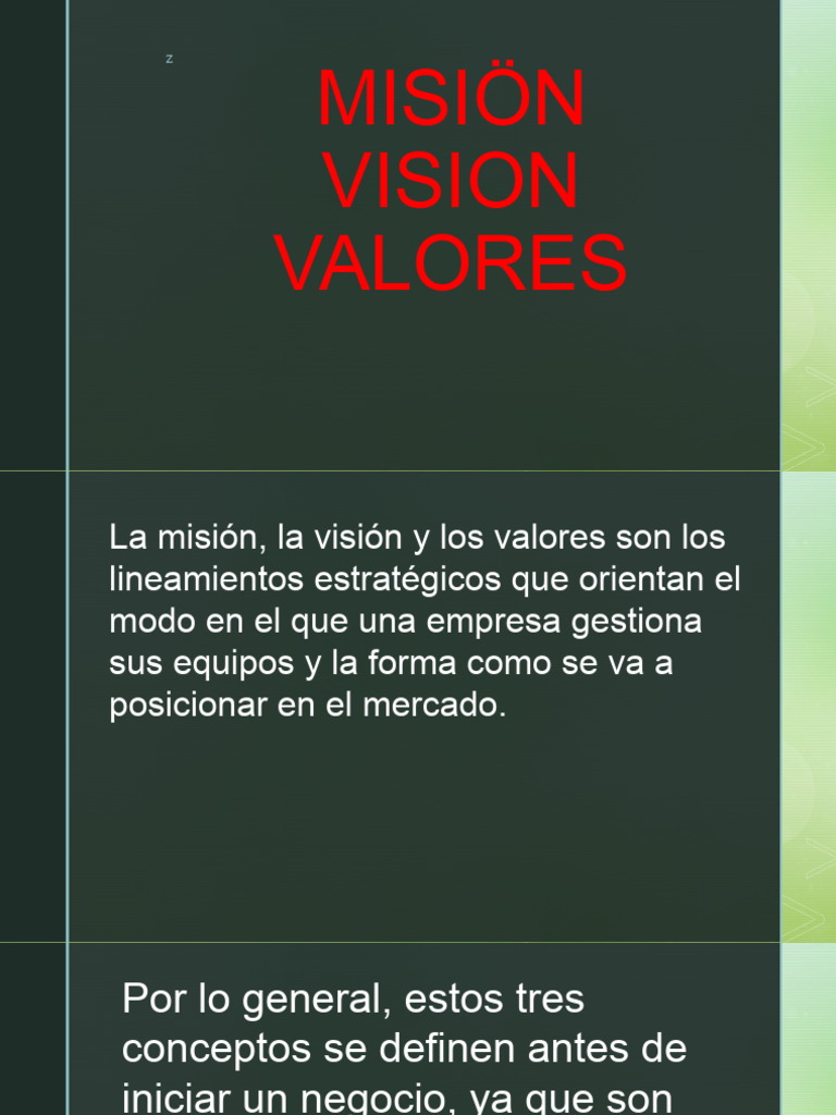La misión, la visión y los valores son los