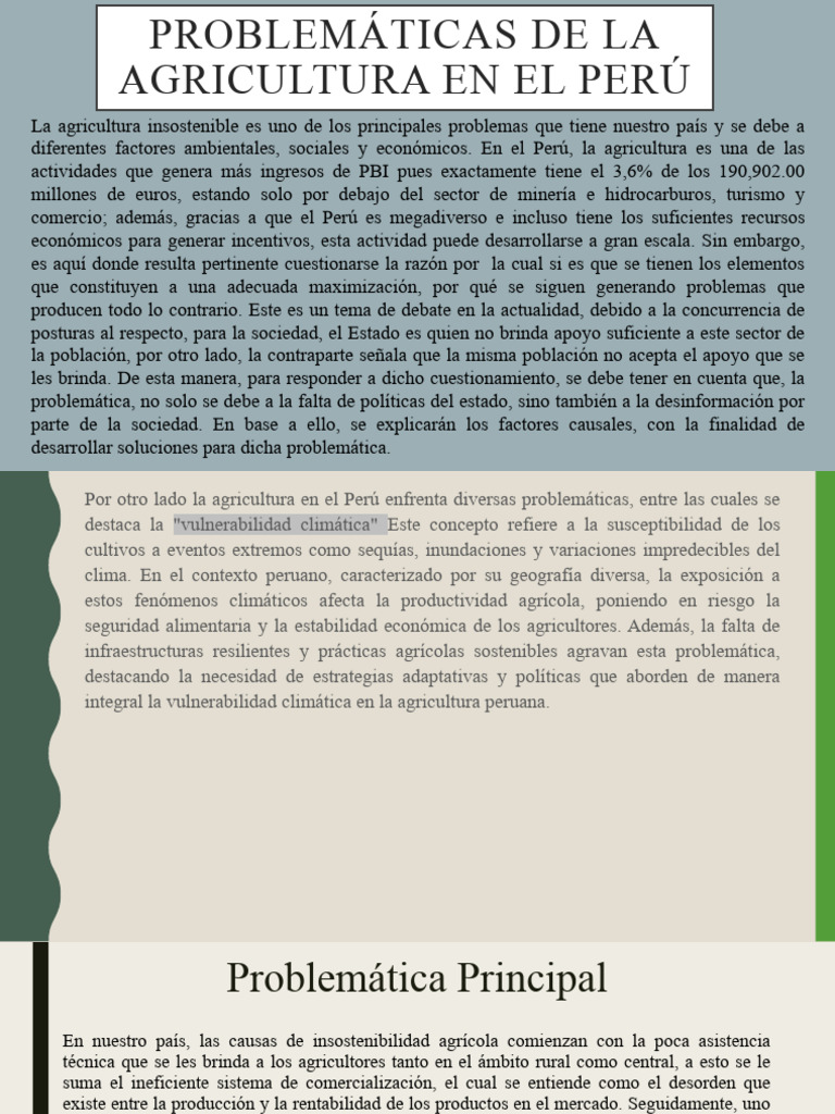 diferentes factores ambientales, sociales y económicos. En el Perú, la agricultura es una de las