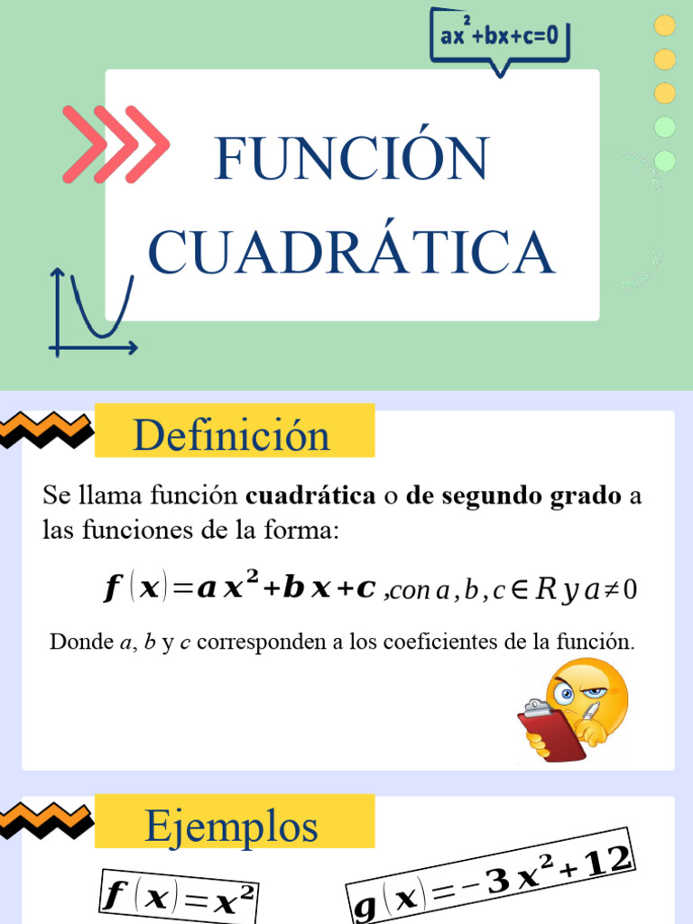 𝒇 ( 𝒙 ) =𝒂 𝒙 +𝒃 𝒙 +𝒄 ,con a , b , c ∈ 𝑅 𝑦 𝑎≠ 0