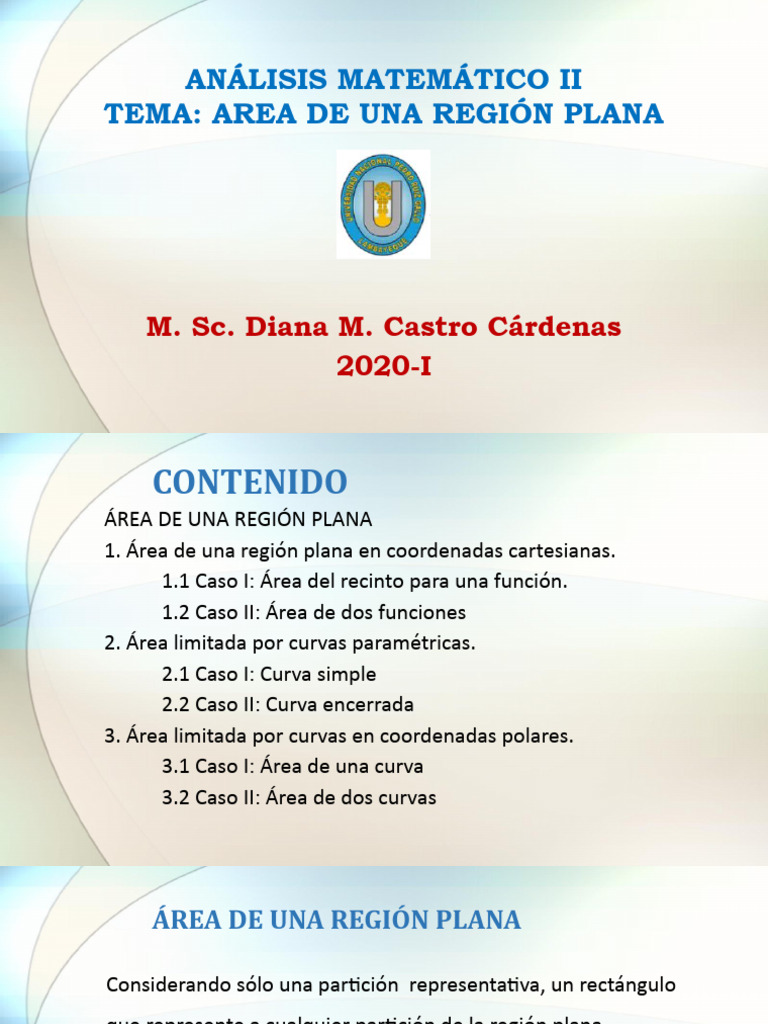 Entonces el área de la región plana bajo la curva C y sobre el eje
