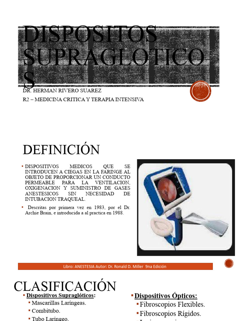 Vía aérea difícil y pacientes No Ventilables–No Intubables. Es uno de los tres dispositivos