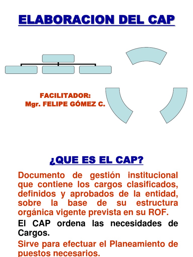 CAP: Documento de gestin que contiene los cargos definidos y aprobados sobre la base de la estructura del ROF.