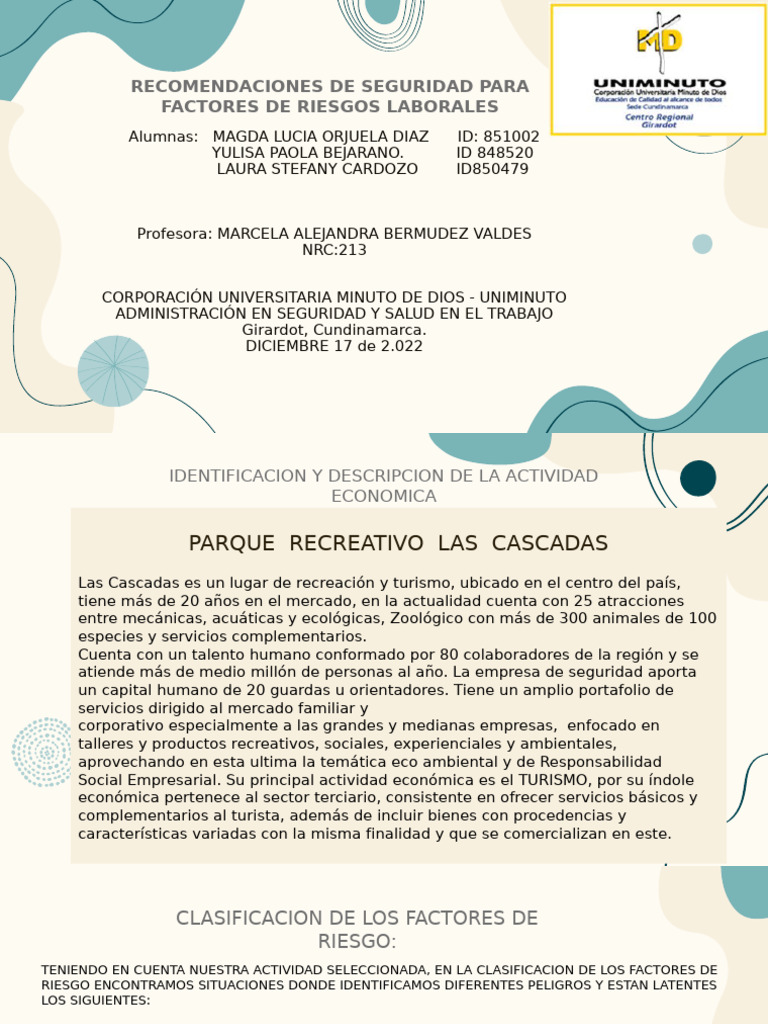FACTORES DE RIESGO LATENTES EN EL PARQUE LAS CASCADAS