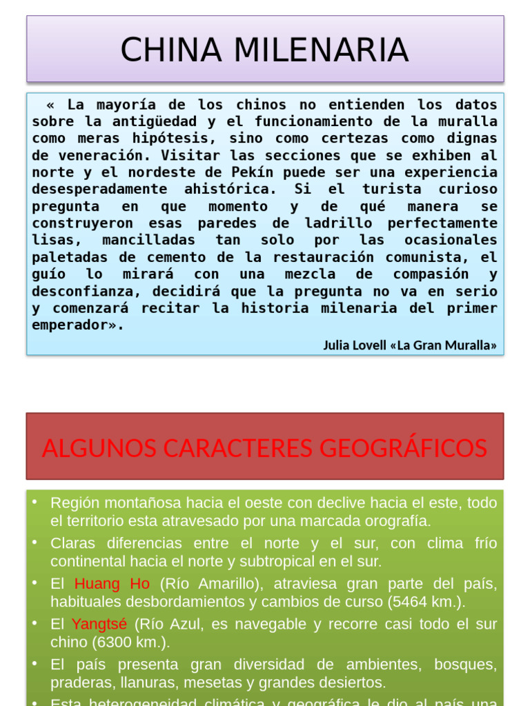 • El Huang Ho (Río Amarillo), atraviesa gran parte del país,