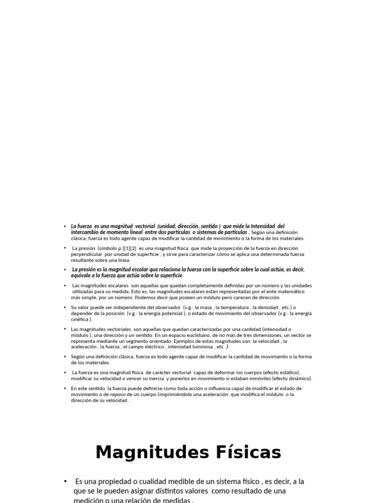 • La fuerza es una magnitud física de carácter vectorial capaz de deformar los cuerpos (efecto estático),