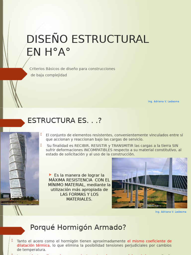 El H° tiene elevada resistencia a la compresión, casi nula a la tracción y es un