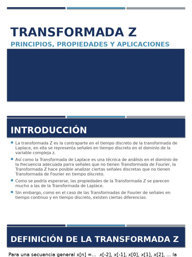 Transformadas más utilizadas en esos dominios como son la Transformada Z y la