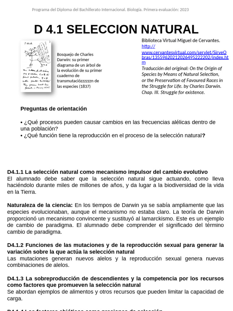 D4.1.1 La selección natural como mecanismo impulsor del cambio evolutivo