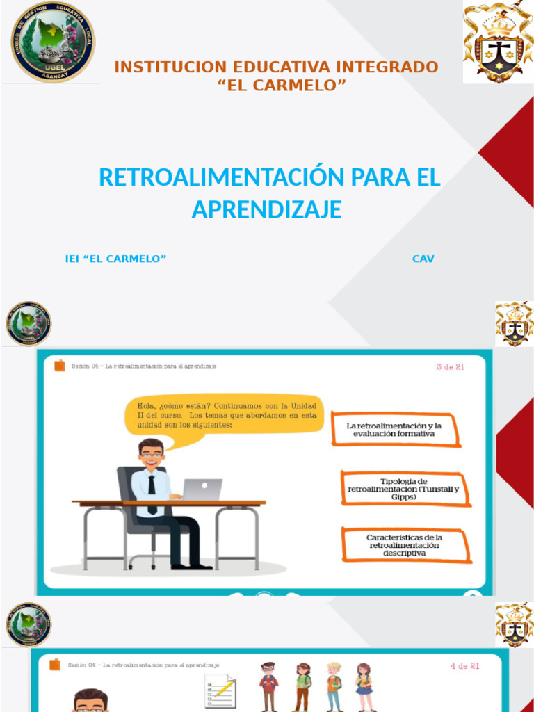 RETROALIMENTACIÓN PARA EL APRENDIZAJEIEI “EL CARMELO” CAVhttps://www.youtube.com/watch?v=ShlEPX6_NUM&t=9sGracias por su atención