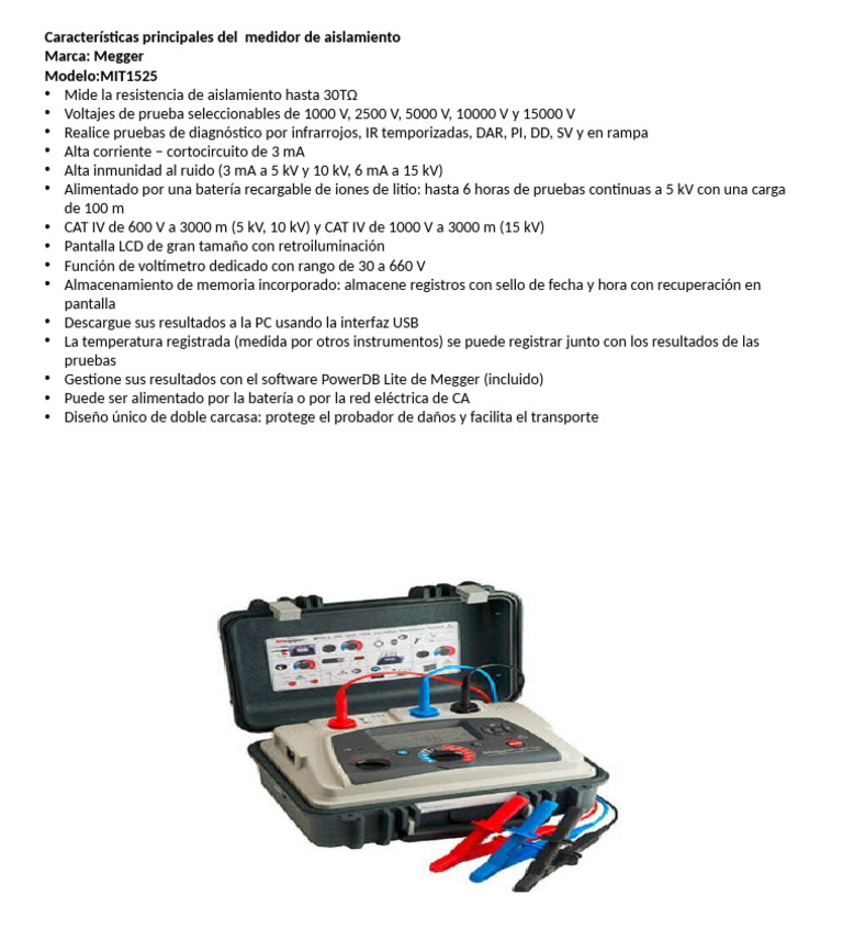 Características principales del medidor de aislamiento
