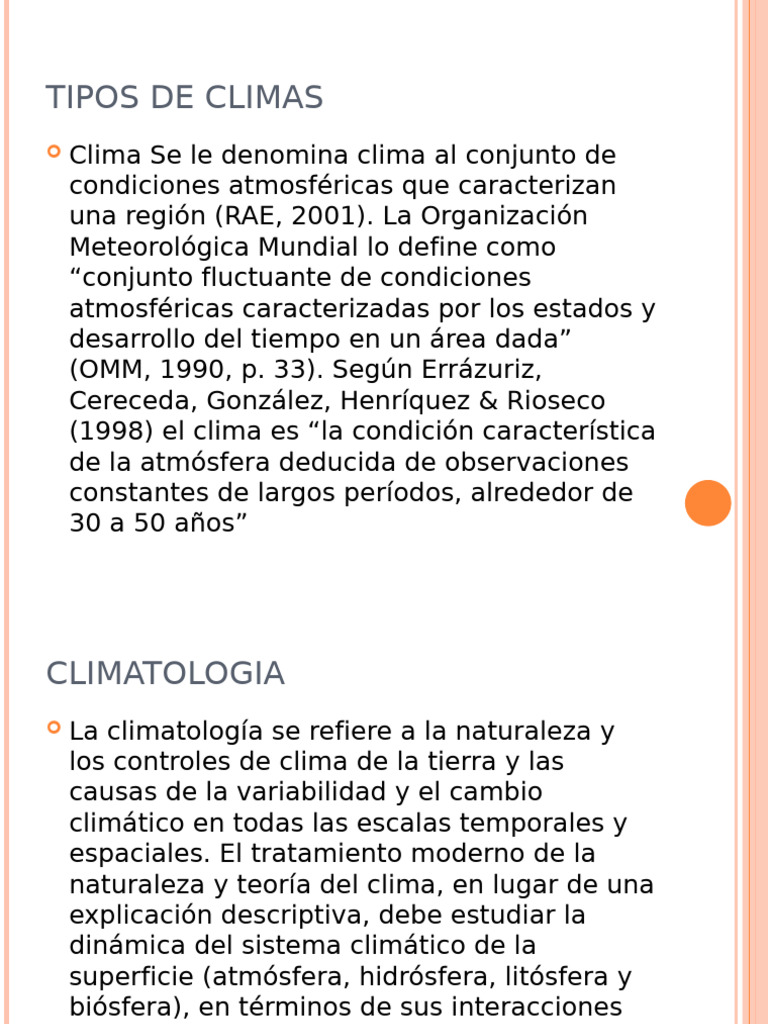 Clima Se le denomina clima al conjunto de