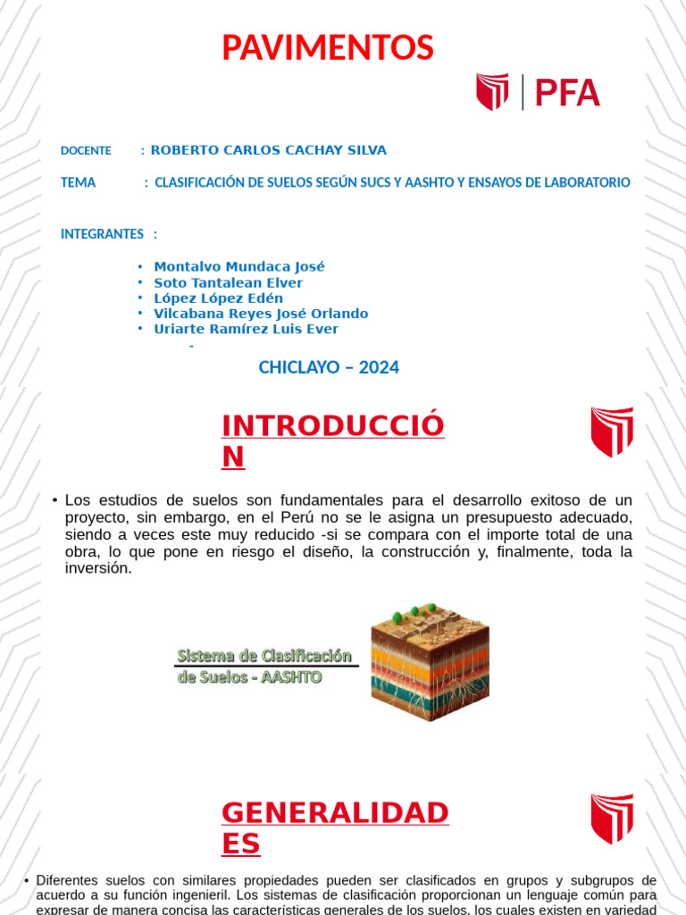 and Transportation Officials) y el SUCS Sistema Unificado de Suelos). El sistema de
