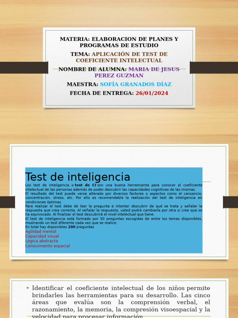 concentración, stress, etc. Por ello es recomendable la realización del test de inteligencia en