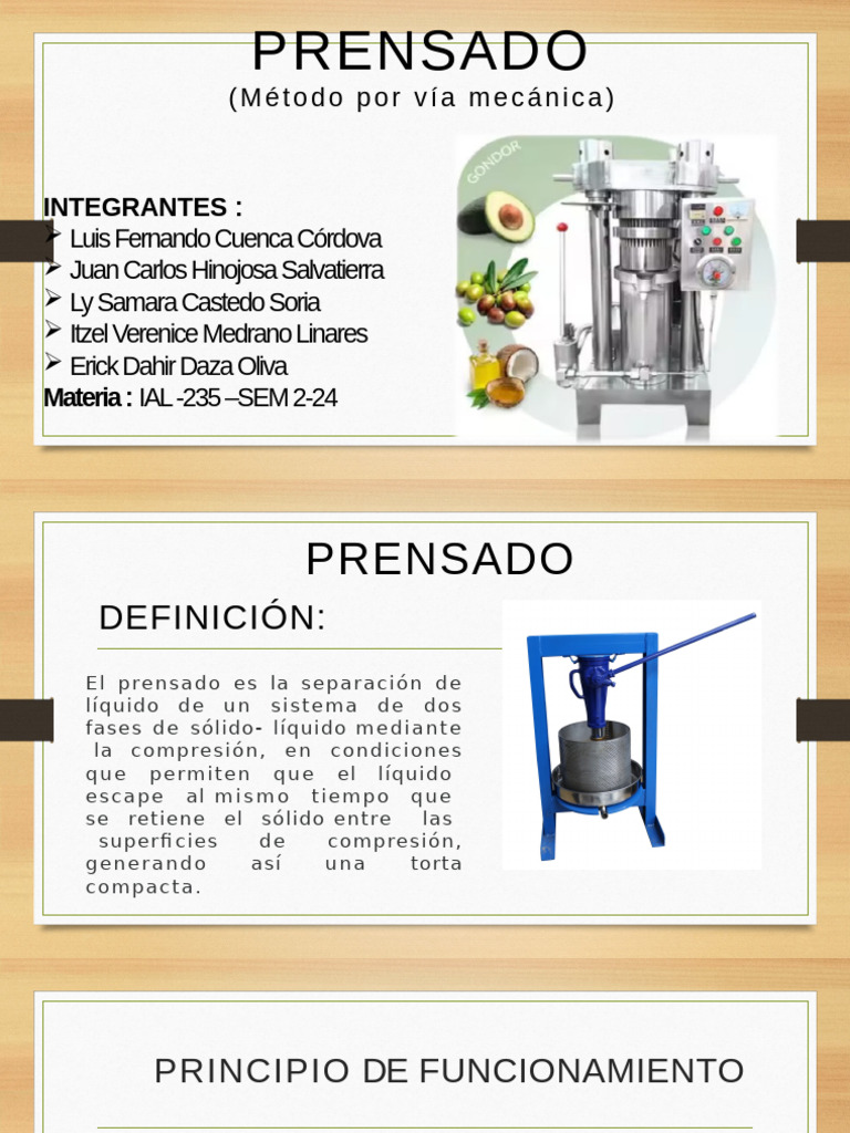 L o s u s o s d e la p re n s a hidráulica e n la industria alimentaria s o n los siguientes: