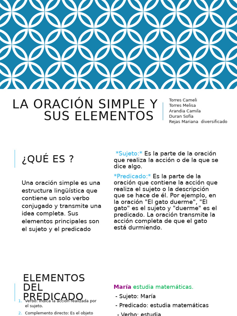 que son: el sujeto y el predicado. Son las mas utilizadas,