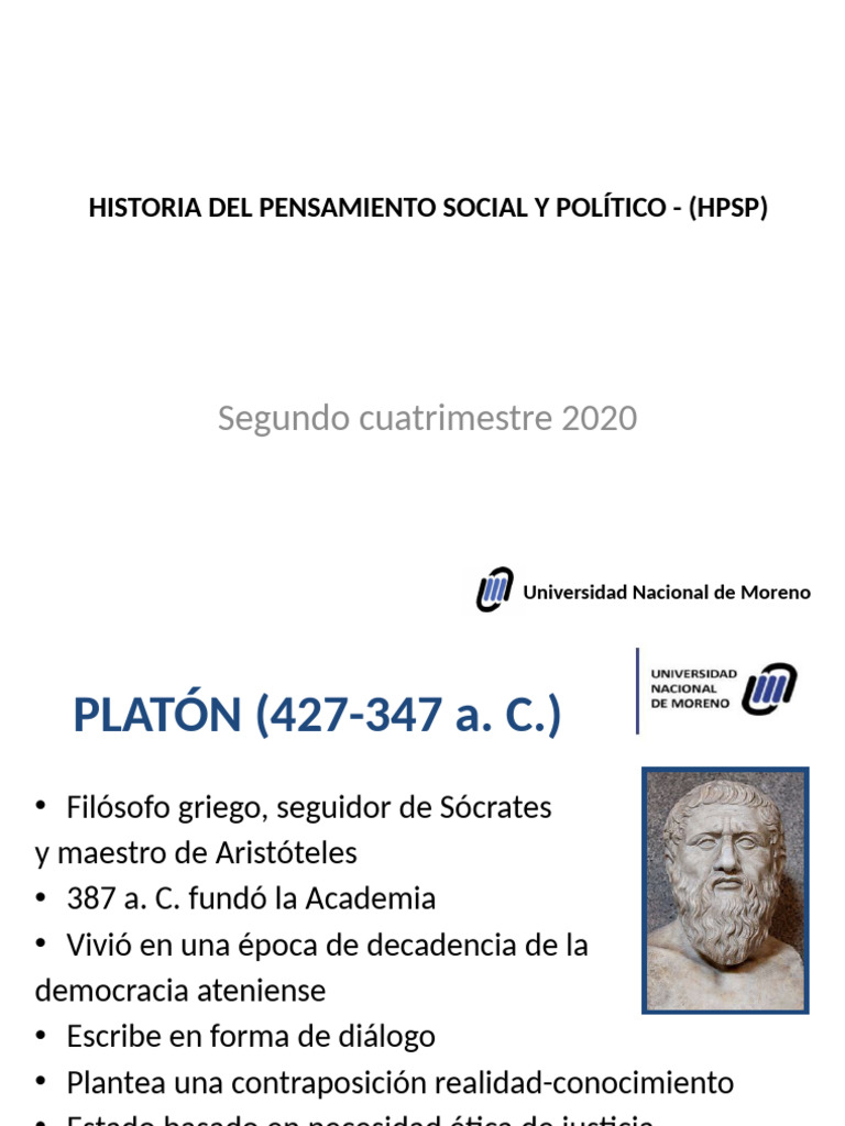 • Platón es un aristócrata llamado a participar en los asuntos de la ciudad. Conoce a