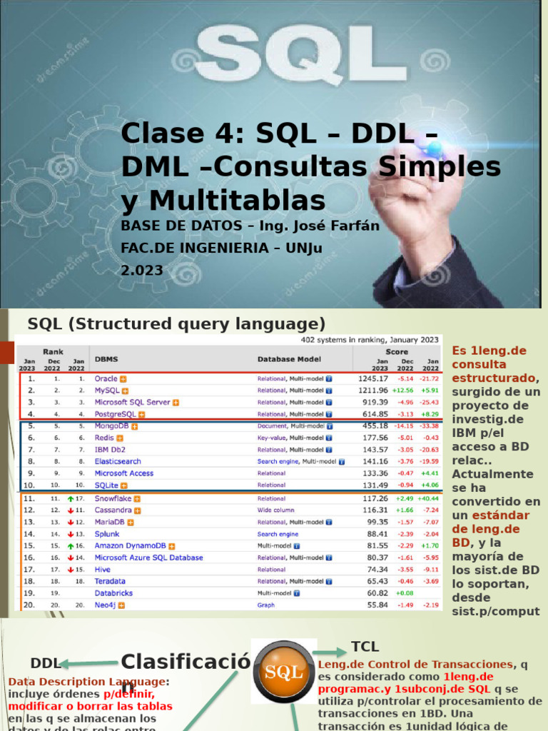 incluye órdenes p/definir, programac.y 1subconj.de SQL q se