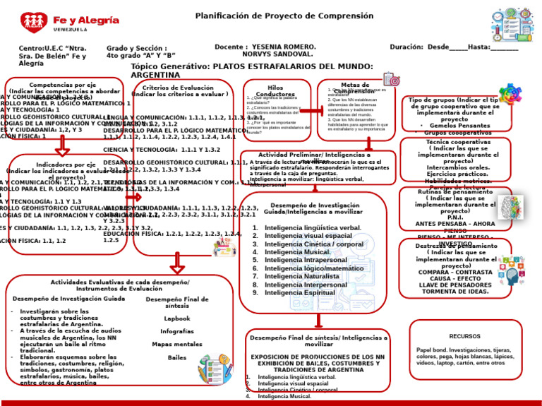 musicales de Argentina, los NN Desempeño Final de síntesis/ Inteligencias a RECURSOS