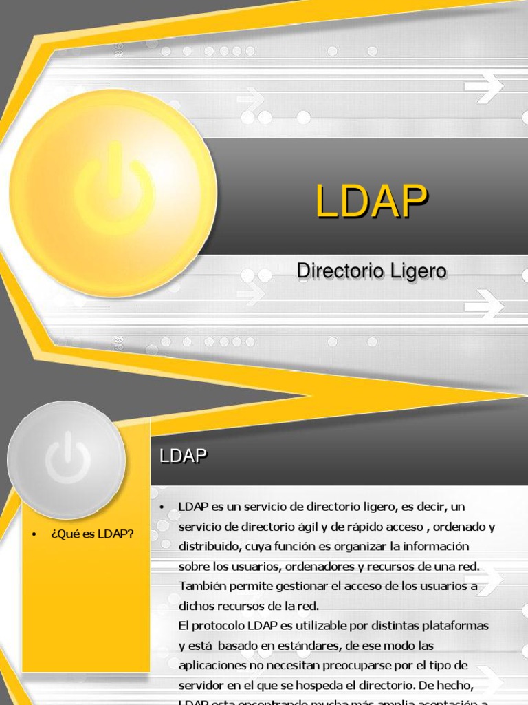 Qu es LDAP? LDAP es un servicio de directorio ligero, es decir, un