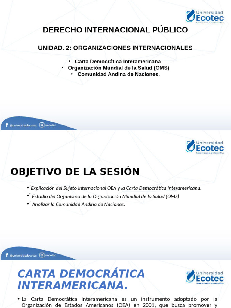 Explicación del Sujeto Internacional OEA y la Carta Democrática Interamericana.