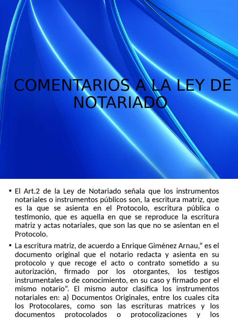 • El Art.2 de la Ley de Notariado señala que los instrumentos