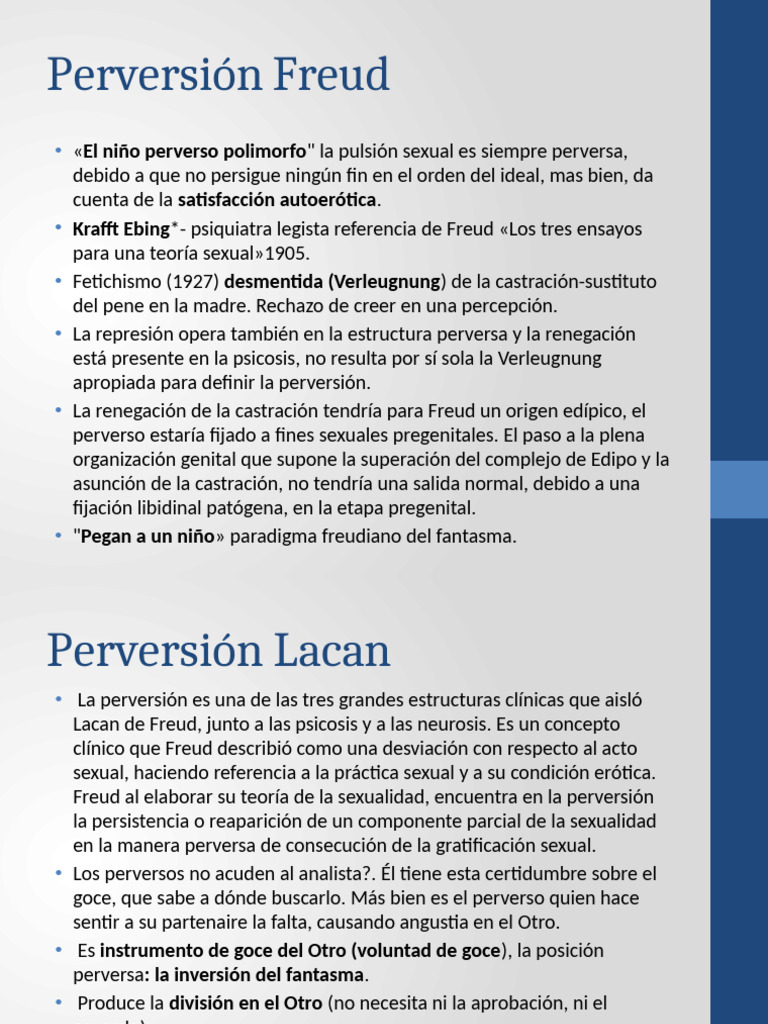• La perversión es una de las tres grandes estructuras clínicas que aisló