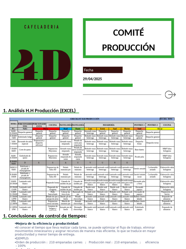 •Orden de producción : 210 empanadas carnes ; Producción real : 210 empanadas. ; eficiencia