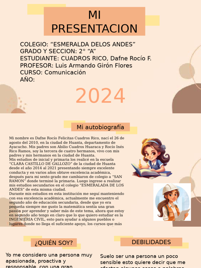 Mi nombre es Dafne Rocío Felicitas Cuadros Rico, nací el 26 de