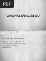 y SEO offpage, con sus correspondientes subdivisiones cada una, más un