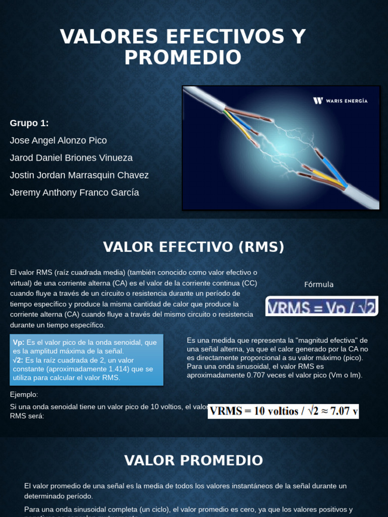 El valor RMS (raíz cuadrada media) (también conocido como valor efectivo o