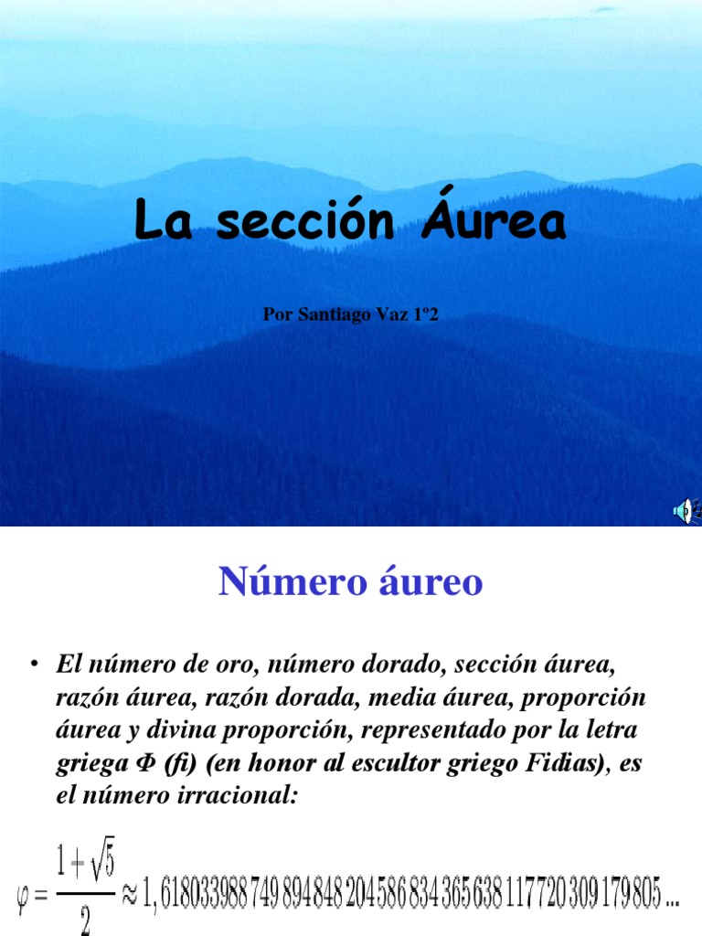 Se trata de un nmero que posee muchas propiedades interesantes y que fue descubierto en la antigedad, no como unidad sino como relacin o proporcin. Esta proporcin se encuentra tanto en algunas figuras geomtricas como en las partes de un cuerpo, y en la naturaleza como relacin entre cuerpos, en la morfologa de diversos elementos tales como caracolas, nervaduras de las hojas de algunos rboles, el grosor de las ramas, proporciones humanas, etc.