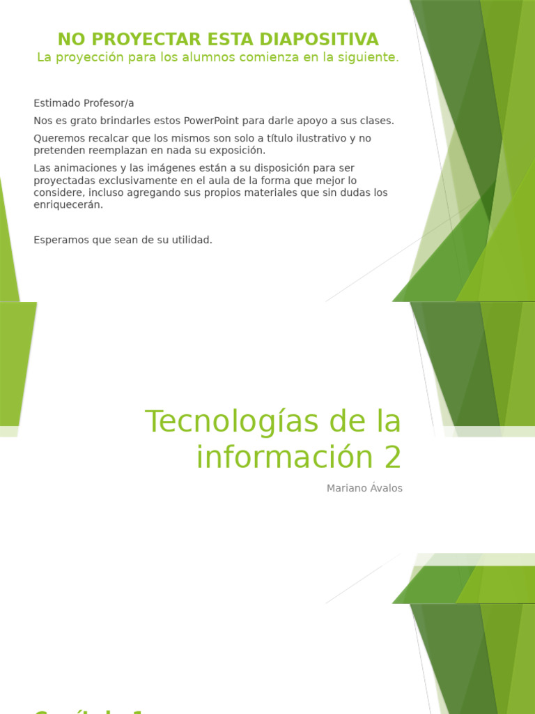 La proyección para los alumnos comienza en la siguiente.