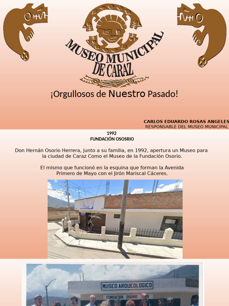 Iniciando así, el Museo Municipal de Caraz, que entre los años 1994 y el año 2002 estuvo