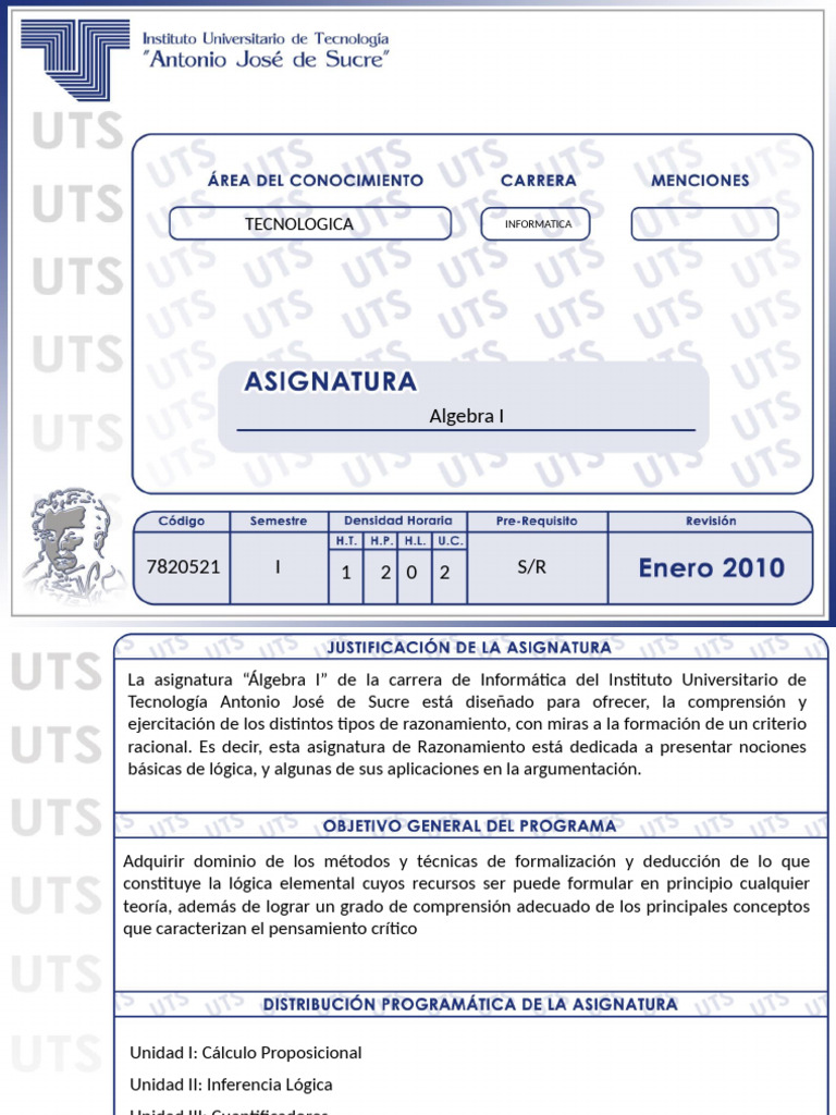 La asignatura “Álgebra I” de la carrera de Informática del Instituto Universitario de