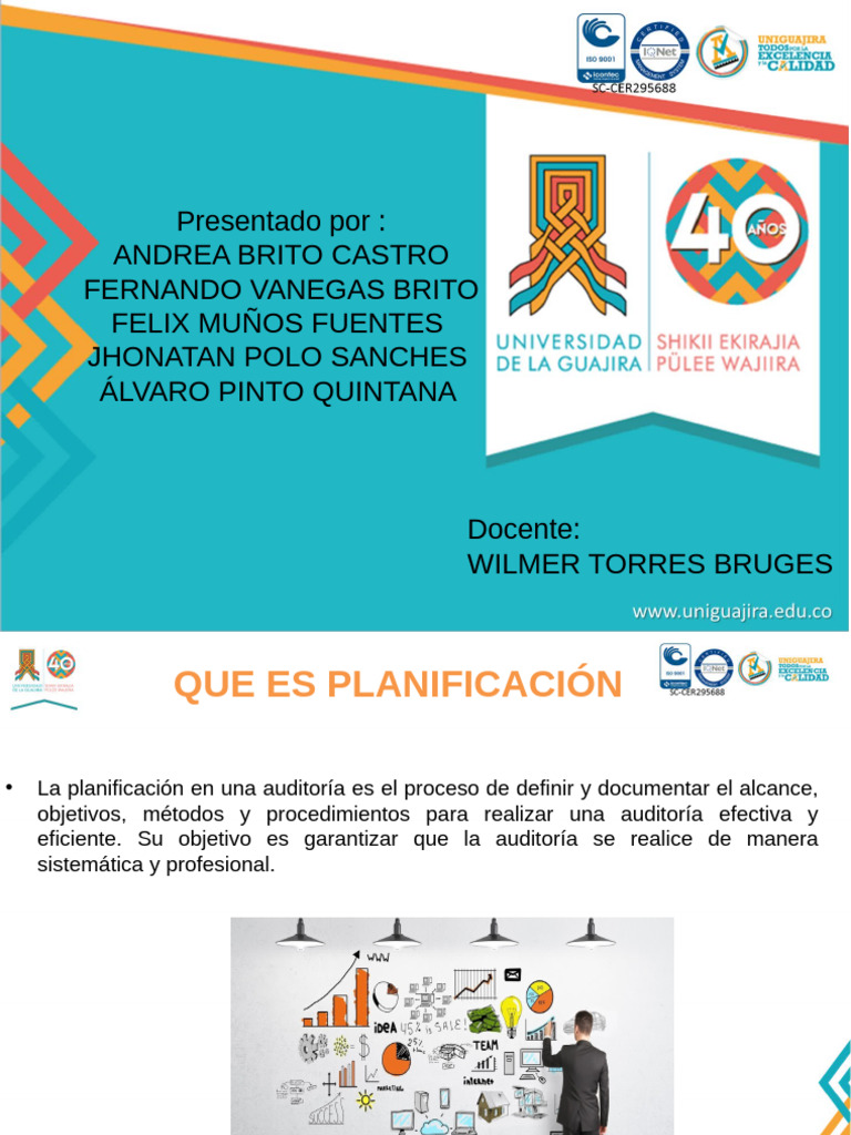 • La planificación en una auditoría es el proceso de definir y documentar el alcance,