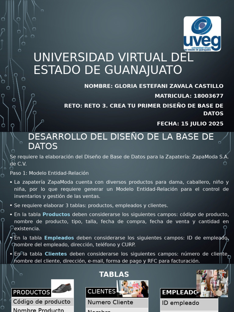 Se requiere la elaboración del Diseño de Base de Datos para la Zapatería: ZapaModa S.A.