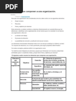 1) Se solicita que enumere los distintos elementos que conforman las siguientes organizaciones,