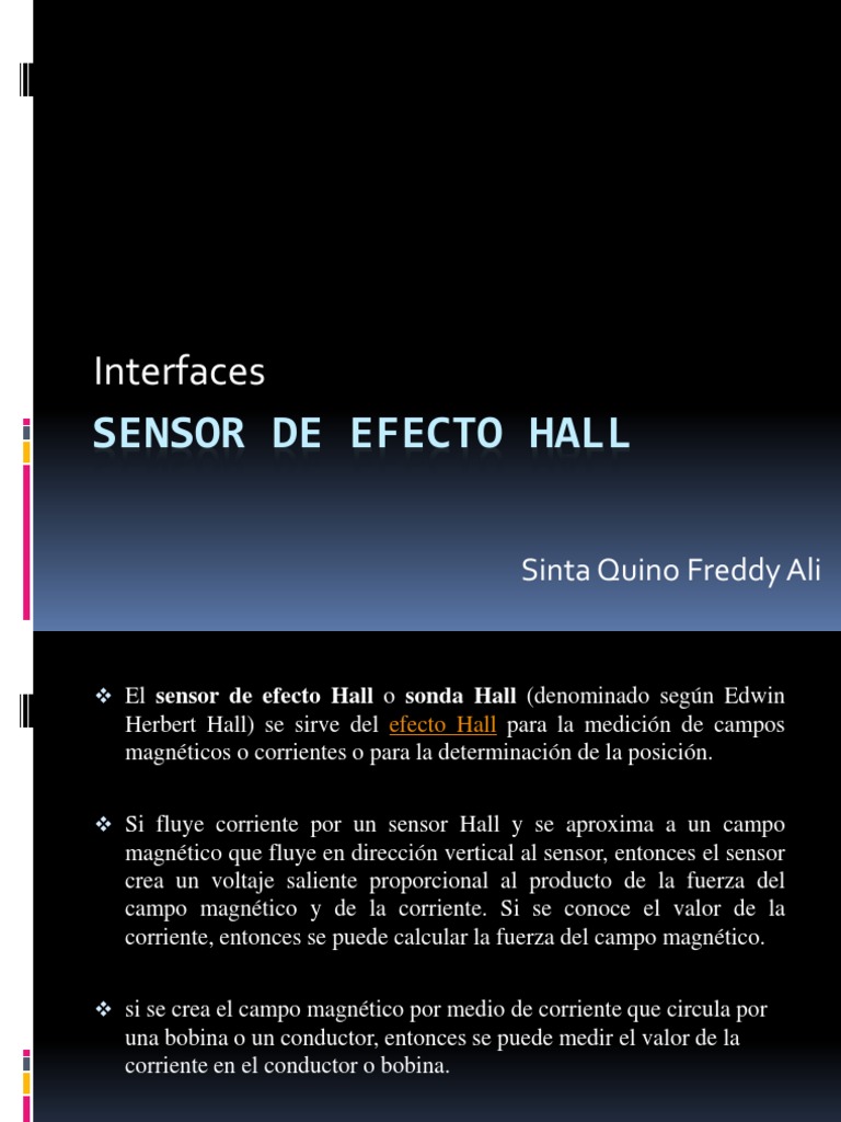El sensor de efecto Hall o sonda Hall (denominado segn Edwin