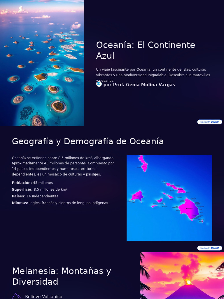 Oceanía se extiende sobre 8.5 millones de km², albergando