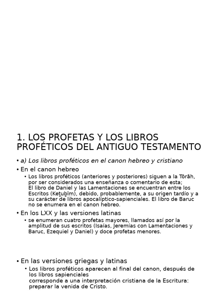 • a) Los libros proféticos en el canon hebreo y cristiano
