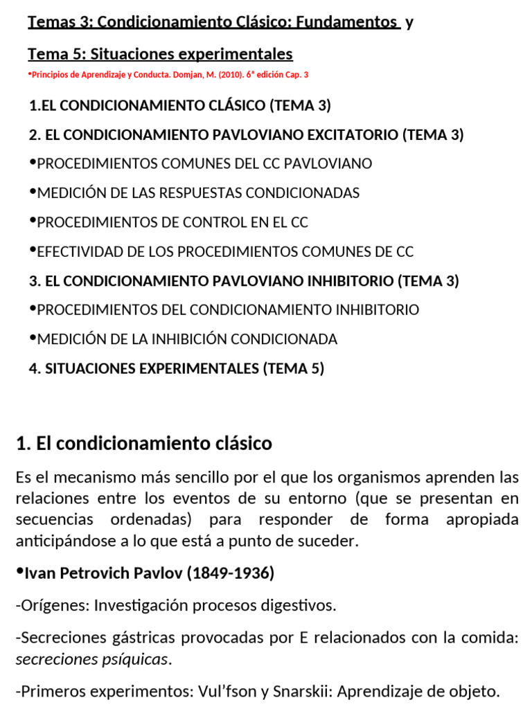 Temas 3: Condicionamiento Clásico: Fundamentos y