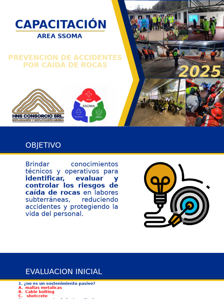 desprendimiento de rocas, se instruye y obliga a los trabajadores a seguir las