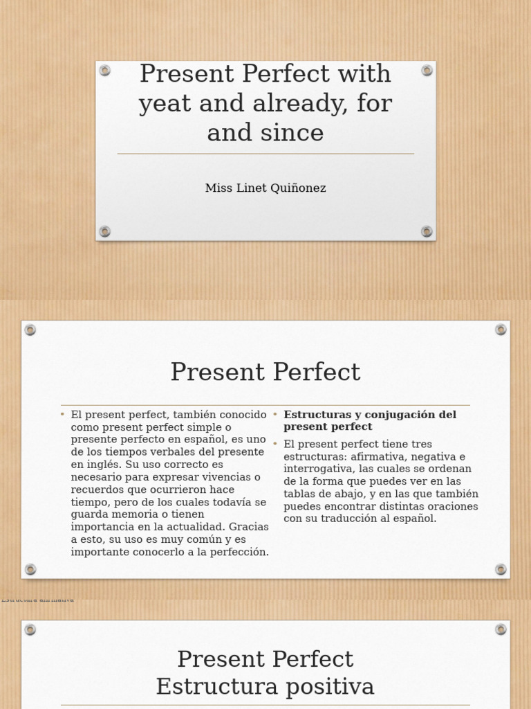 perfecto (have+participio). Puedes verbo. Por su significado suele