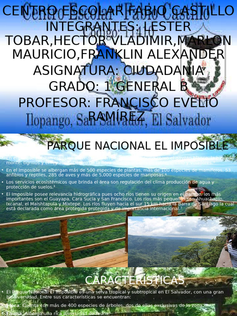 • El Parque Nacional El Imposible es una selva tropical y subtropical en El Salvador, con una gran