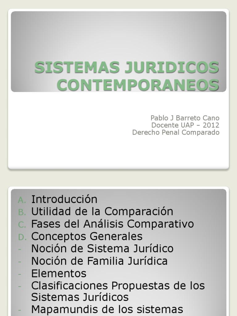 Introduccin Utilidad de la Comparacin Fases del Anlisis Comparativo Conceptos Generales Nocin de Sistema Jurdico Nocin de Familia Jurdica Elementos Clasificaciones Propuestas de los Sistemas Jurdicos Mapamundis de los sistemas jurdicos