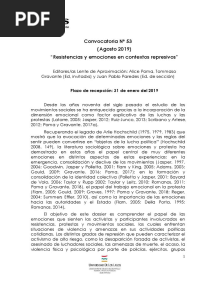 Convocatoria Dossier "Resistencias y Emociones en Contextos Represivos"
