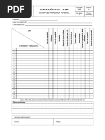 Formato Verificación de Uso de EPPPDFFormato Verificación de Uso de EPPAgregado por Art RL0 calificacionesfunction cn(e,t){var n=e+t;return n<=0?0:Math.round(e/n*100)}% encontró este documento útilGuardar Formato Verificación de Uso de EPP para después